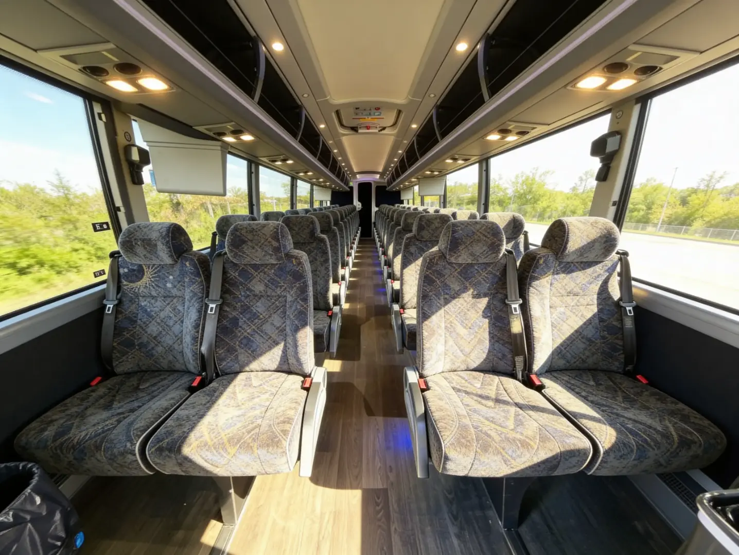 Our Cedar Rapids charter buses are equipped with the modern amenities you need to keep your group comfortable, connected, and on schedule through every mile of your journey. From power outlets and overhead parcel racks for road warriors on corporate event trips to TV screens and panoramic windows for long-distance leisure trips, we offer the ideal ride for any group. You can request ADA-compliant features like widened aisles, onboard lifts, and rail-secured seating at no extra cost, helping you meet the needs of every passenger.